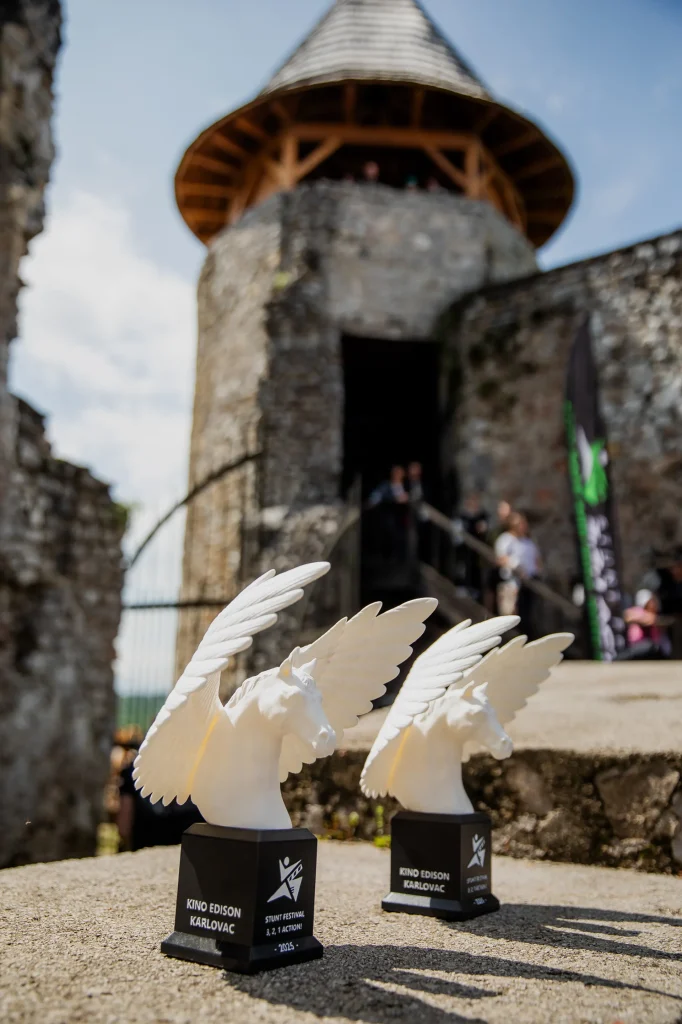 Dodjelom trofeja Pegaz Festival odaje priznanje najuspješnijim i najatraktivnijim kaskadama u muškoj i ženskoj kategoriji. Nagradu dodjeljuje višečlani međunarodni stručni žiri čiju bazu čine kaskaderski koordinatori, najiskusniji kaskaderi te relevantni predstavnici filmske industrije. Ove godine trofeje će dodijeliti tročlani žiri u sastavu: Simone Belli (Italija), Alex Cvetkov (Slovenija) i Carl Stück (Njemačka).